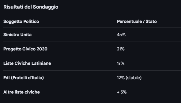 Il sondaggio rivela che i cittadini giudicano ancora come un errore imperdonabile la caduta dell'Amministrazione nel 2024, causata proprio dai Piraniani dopo un decennio di dura opposizione, dei latiniani, al sistema PUGNALONI.