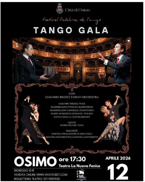 Lo spettacolo al teatro ha schierato un cast d'eccellenza: l’orchestra Giacomo MEDICI Tango Ensemble, la voce di Ruben PELONI e i ballerini Samuel FRAGIACOMO, Sara PAOLI, Matteo e Ludovica ANTONIETTI. Nonostante i 3.000 euro di contributo cash e i servizi gratuiti, per i residenti il biglietto è rimasto a 15 euro.